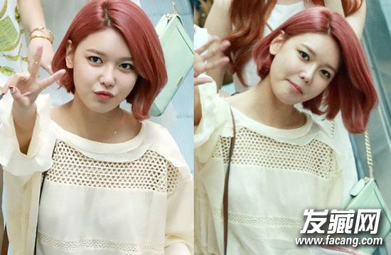 秀英的侧分LONGBOB发型不对称设计显得可爱甜美,搭配粉色发色吸睛指数瞬间得到提升。