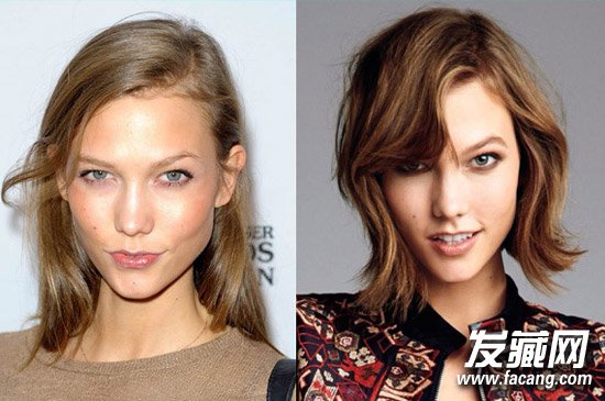 卡莉·克劳斯的LONGBOB发型也是采用不对设计,侧分无刘海设计显得比较随性自然,而斜刘海设计可以修饰脸型让脸型变得更瘦。