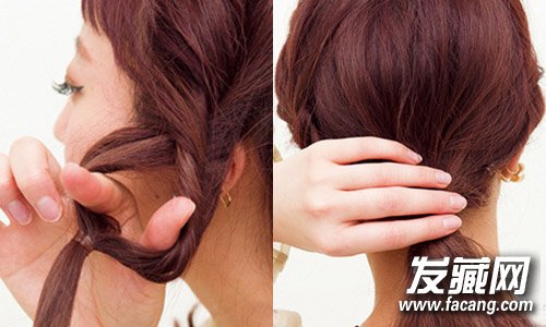 step 1:两边取小束头发扭转,扎成小发束,再将发束扭转。
