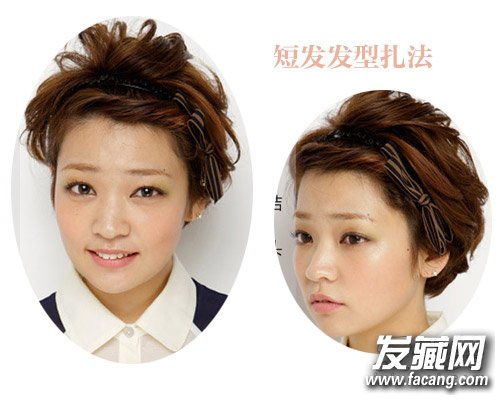这款短发造型搭配蝴蝶结头带,非常适合这个缤纷的夏日,比较可爱。蓬松凌乱的短发经过稍微的打理就可以有不一样的造型啦。