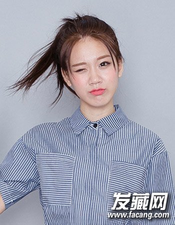 中分的长刘海造型设计清爽感十足,再搭配这种碎发形式的高马尾扎发设计更添十足的青春活力感,很适合校园女生们的一款发型设计。