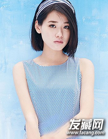 乌黑亮丽的自然发色可是最显女生十足的清纯气质风了,再搭配这种偏分的造型设计与碎发形式的中短发波波头,一个简单的发箍设计更添十足的甜美学院风。