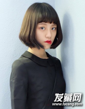 同样是清新低调的自然发色来增添女生的自然感,而短刘海的设计与内扣形式的波波头造型更添十足甜美可爱活泼学生范儿。