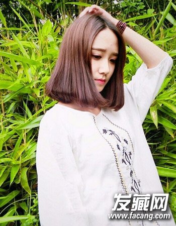 很清新森女风短发发型,气质的中分与齐肩短发打理出来 ,将发尾剪齐然后微微的内扣不仅清纯而且颇显甜美。