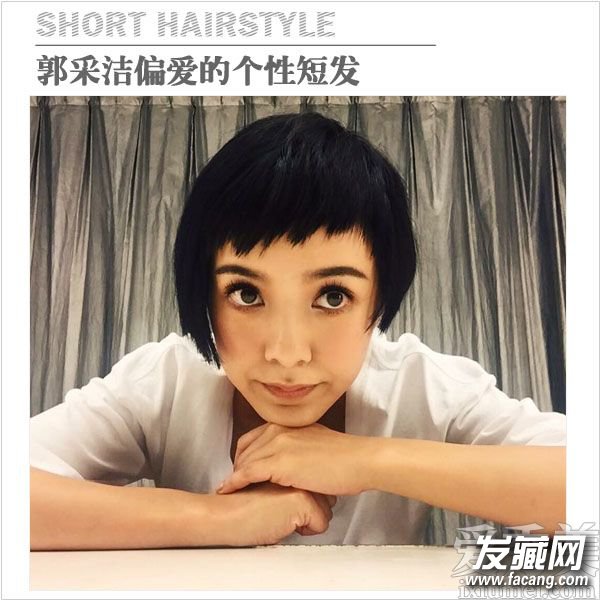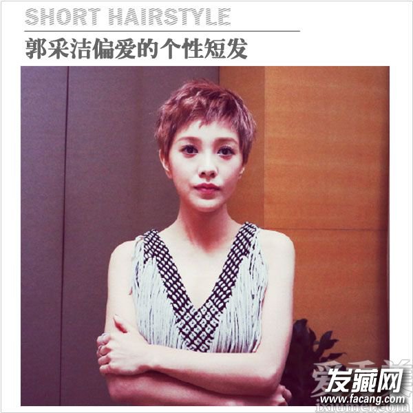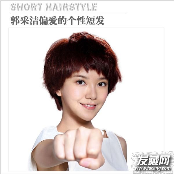 将前额的刘海剪碎,并剪成参差不齐的长度,是一种很时髦的刘海处理方法,可以制造出层次感,让郭采洁显得更有个性更俏皮可爱。