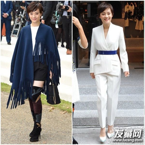 娘娘时装造型更是不得了呢,无论是西装还是短裙都很显时尚范,斜刘海短碎发造型时尚大气。