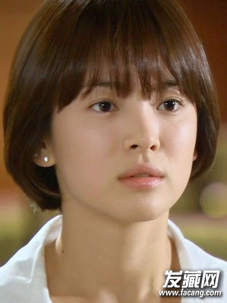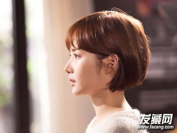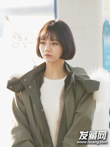 拥有空气刘海的蘑菇头,发尾齐整,适合瘦小的女生。