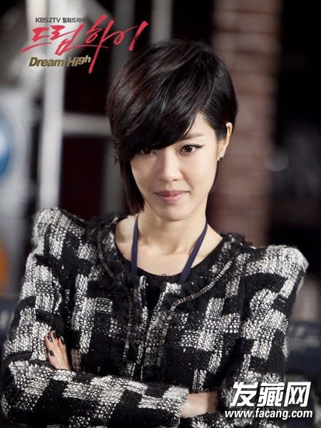 深入人心的经典形象,刘海斜分到一侧眼睛上方,两侧发尾修剪成前长后短。
