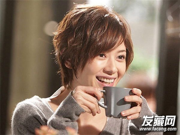 发量较厚的姑娘可以尝试的一款短发,斜分刘海后将余下的头发微卷,喷上塑型摩丝,让造型更加蓬松挺立。