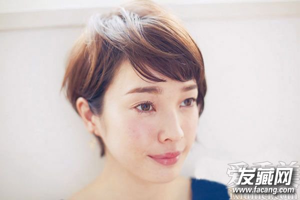 好像绸缎一样光泽柔美半湿润质感。虽然是容易显得男孩化的发型,但通过COSme烫发和粉棕色染发增添女人味要素,也可以如此俏丽!颈部头发剪短些,侧面头发留长,就可以营造出明快印象提升人气度。齐到眉上的刘海从内侧粗略的分开,少的部分别在耳朵后面。层次感的发型一定能突出时髦小脸!