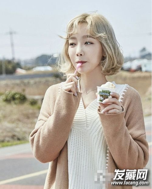韩国女星泰妍的发型绝对是短发控和染发控们的首选参考,她刚刚齐下颚的微卷短发可是很受欢迎呢,泰迪卷刘海搭配浅金色发色,温暖洋气!
