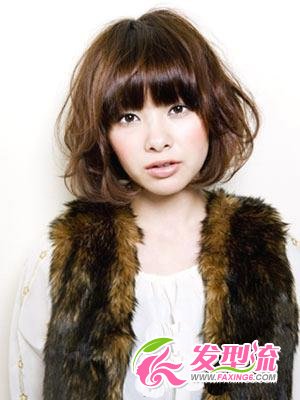 漂亮的皮草搭配这样一款摩登的时尚短发,显得贵气十足,这样的发型也是大圆脸的潮人首选哦!整体造型相对来说也比较简便,只要稍稍的将头发往日系风范儿的方面进行烫染处理就很完美啦,想要改变大圆脸,齐刘海是必备的哦!