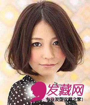 中分刘海,长至两腮,与后面的发丝完美融合,是一款瘦脸效果极佳的发型,也是很有女人韵味的发型。短发打造出蓬松的效果,显得饱满厚重,把脸型衬托得更加娇小玲珑。