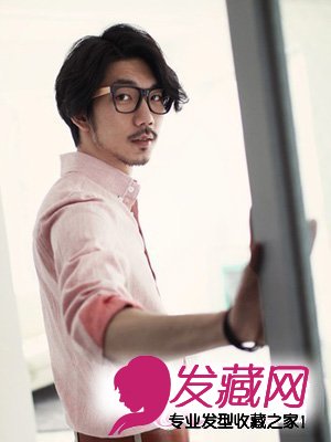 非常有艺术气息的一款发型图片,一副流行单品黑框眼镜以及粉嫩的衬衣,显得男生艺术气息浓郁!符合他整体散发出来气质的三七分短发发型及时的表露了他时尚潮流的一面,侧分的斜刘海微微卷翘,浓眉大眼给人帅气的感觉!自然黑色,也彰显出他崇尚自然简单的一面!