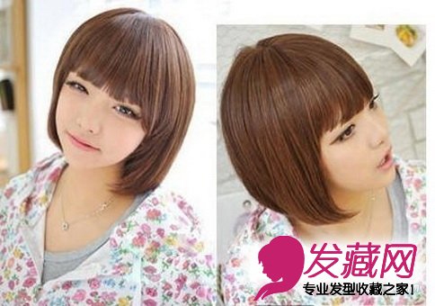 青春可爱的齐刘海BOB头是扮嫩的首选发型,颧骨处的发丝将脸型修饰的非常可爱。