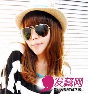,青春洋气,盖住眉毛的齐刘海巧妙减龄,搭配礼帽和墨镜酷酷的潮范儿味道十足。
