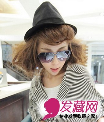 蓬松的烫发挽发,个性时髦,厚重而具有独特风情的刘海很有韵味,搭配黑色礼帽更有范儿,再配合墨镜显得酷劲十足呢!
