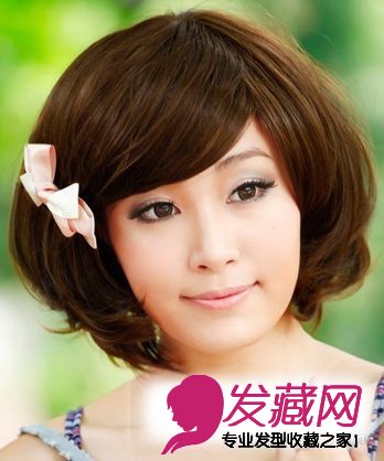 利用蝴蝶结发夹将刘海发型别至一侧,展现出女生甜美可爱的一面,极具空气感的波波头发型,制造出轻盈的质感跟圆润的效果,深色系的