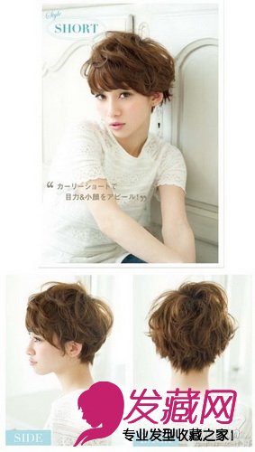 遮眉细碎的刘海带出媚眼的诱惑力,侧向一边的凌乱小卷卷出可爱的小脸蛋,后颈剪短了,所以,张弛平衡也利落。