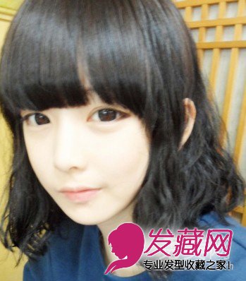 俏皮可爱的韩式蛋卷头,这是一款标准的齐肩发型。波浪形的发丝卷,自耳朵部分加入,整齐的平刘海,搭配侧面秀发,打造小巧脸颊。