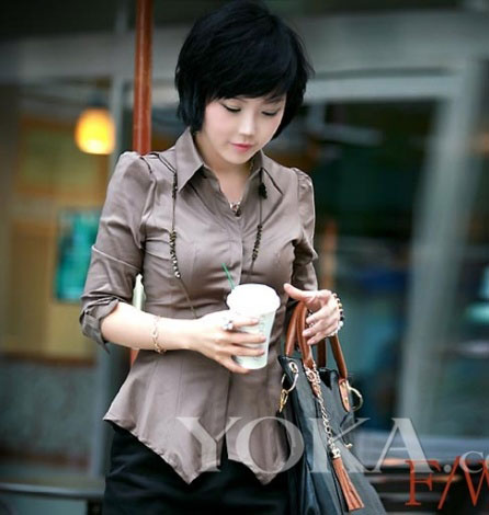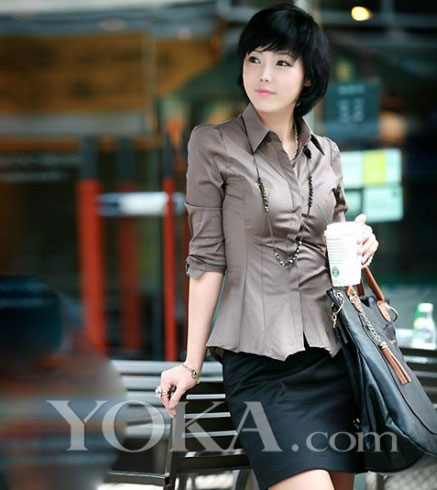 因为衬衣是带有领子的,再加之这件衬衣是高领。所以短发会显得脖子更加的修长,不像长发显得比较累赘。