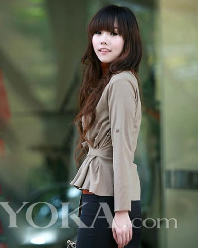 因为是长卷发 ,所以在发色上要做略微的调正,其实不必整头的去染发 ,只要挑染几缕就能达到我们想要的洋气卷发效果。 齐刘海 与长发,这二者的结合是最能够修饰我们的脸形的,特别是头上部分比较宽,或者是菱形脸的女性。最适合这样的发型。