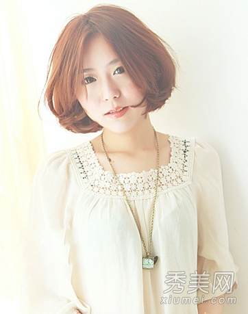 圆脸型的女生适合这种中分刘海,蓬松的烫发发梢,依偎在脸颊,立变小V脸。