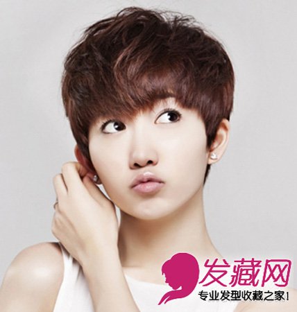 ,精灵可爱而又不失俏皮小女生气息,不整齐的碎刘海修颜减龄而又凸显了瓜子小脸,栗色发色显青春时尚。