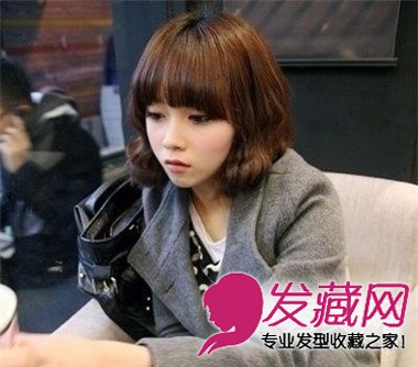深棕色短卷发带来轻熟龄女性的知性婉约,齐刘海依旧是减龄的不二选择