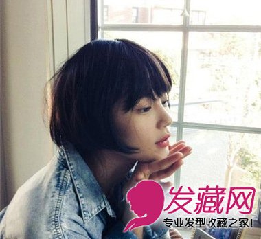 齐刘海波波头是很容易打造出小清新的感觉的,蓝色牛仔外套是MM们的必备单品