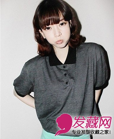 最新时尚款短发发型 齐刘海的蓬松短卷发发型(3)
