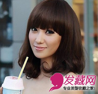 厚厚的齐刘海绝对是萌系少女们的最爱,也是减龄的秘密武器,齐肩的中短发在发尾处烫上梨花大卷,甜美可爱中不是温婉柔美。