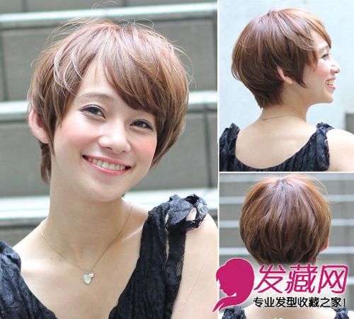 小编点评:这款短发染发颜色比较普遍,凌乱的顶层发丝增加了些许潮流指数,斜刘海能够拉长脸部线条,对圆脸有一定的修饰效果,此外,斜刘海也是高额头很好的匿身之所。