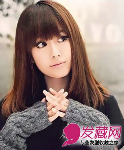 很简单的齐刘海长发,对于娃娃脸的女生而言是最最简单的造型打扮了。即好看,又有功能性。