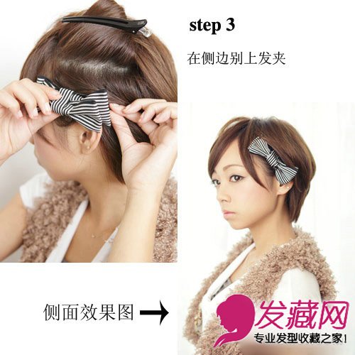 step 3:别上条纹发夹,然后在把上面的头发放下。