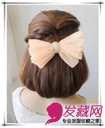 方法也可以打造出内扣波波头的效果,先来看看完成图,在后面戴上甜美的蝴蝶结发饰,甜美十足。