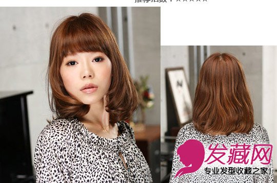 内扣齐刘海搭配中发轻松修颜,让圆脸变小脸,头发颜色比较衬肤色。