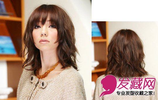 2015侧分女生短发发型图片 斜刘海搭配中长卷发(4)