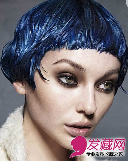 这款蘑菇头发型,时尚的紫色染色,显得个性时尚。