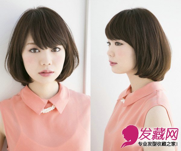 内扣的波波头其发色让皮肤显得超级的白皙,斜刘海及眼更加的突出眼睛的闪亮。