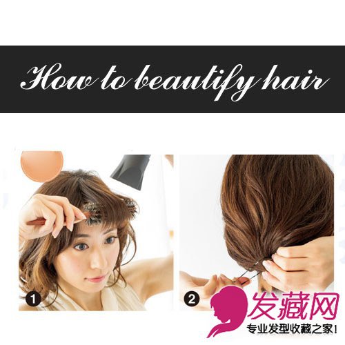 1.我们先把刘海由里向外梳理,并配合吹风机使之恢复光泽。
