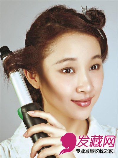 将分区以外剩余的头发全部用点卷棒夹出自然纹理,不必太卷,两侧斜向后夹出自然纹理,后面头发分大片发尾夹出自然纹理即可。效果是全头发尾呈现蓬松感。