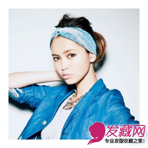 马尾,搭配一只蓝色头巾,清凉甜美的模样让人难以移开眼眸。