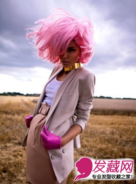 伤头发,那么心动,就试一次做到最完美,这款粉色短发让你在人群中脱颖而出,适当的蓬度很有朋克感。