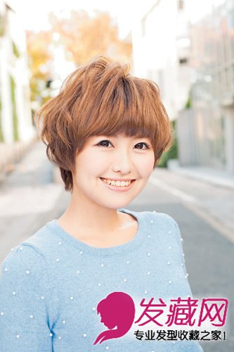 从耳朵周围至眉毛线条周围的头发都要尽可能剪得圆润、柔和以及优雅,使得眼神显得更为惹人怜爱,这个短发可以帮你成为拥有纯真笑容的甜美女孩。卷发部分斜向地取些发丝进行细卷,从而打造出如羽毛般轻盈而蓬松的感觉。
