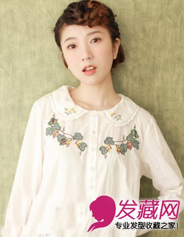 非常轻柔的田园风少女,身穿森系刺绣衬衫,娃娃领更显粉嫩,而一款甜美又清新的编发最适合了,额前发髻多了萝莉感。