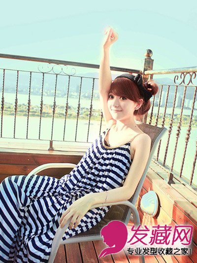 发型,这样的刘海以及发型整理设计,是当前流行的元素哦,发色在阳光的挑染下也是韵味十足,性感的着装,可爱的发饰也诠释了这款靓丽发型。