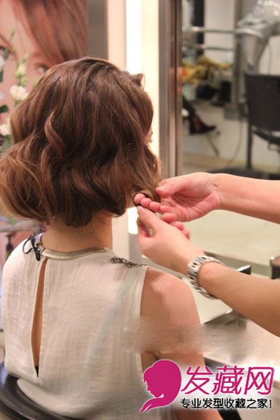 用手将这个假“Bob头”的发尾拉整齐,将凹陷的头发拉出,使其看起来蓬松且有卷度。