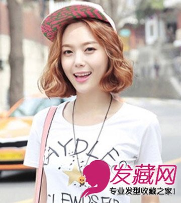 亮棕色的头发颜色,可以提亮妹子们的肤色,对于肤色暗淡的妹子,这下有救咯,蓬松的卷发,搭配尅啊的表情,简约的帽子,更显清甜活泼,