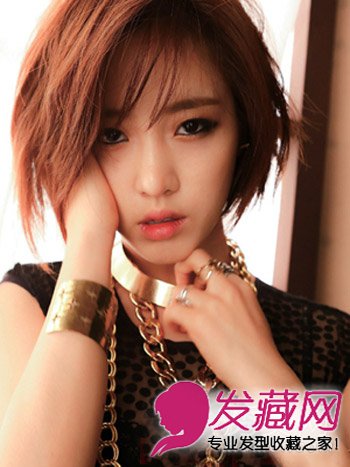 搭配栗色的染发,这款波波头短发更添时尚的韩流气息,质感十足的发丝搭配刘海,轻松修饰出精致的小脸。
